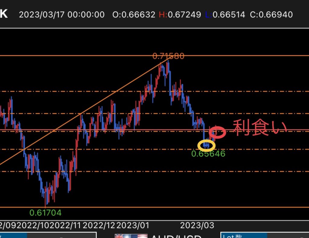 ◼️使った手法→フィボナッチ(61.8%からの反発上昇狙い)