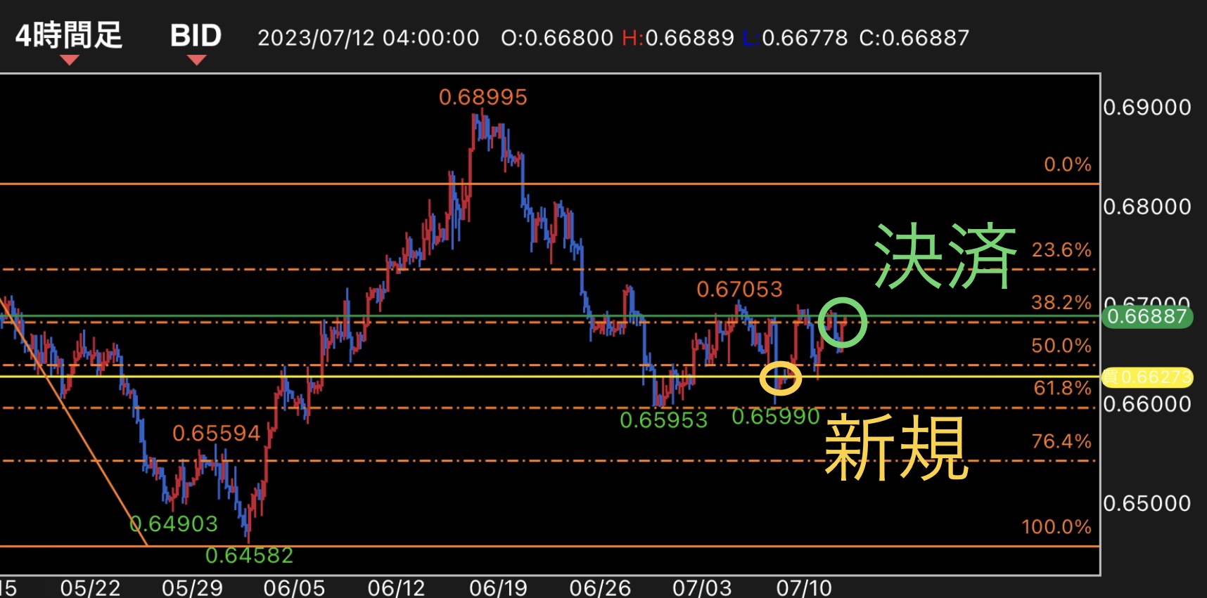 ◼️使った手法→フィボナッチ(61.8%からの反発上昇狙い)