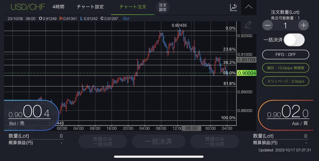 ◼️手法→フィボナッチ(50%からの反発上昇狙い)
