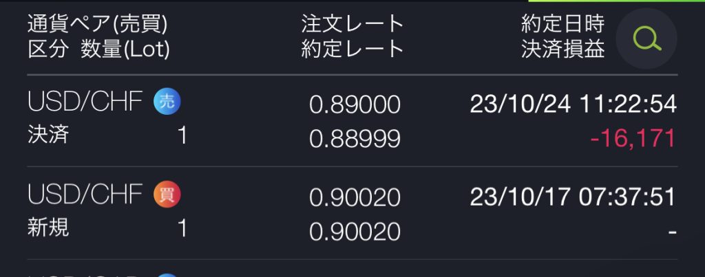 一週間程保有してましたが、保有して早々にイスラエル問題が勃発し、リスクオフから、有事に強いフランが買われ、終始マイナスの状況でした。